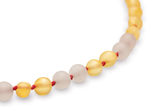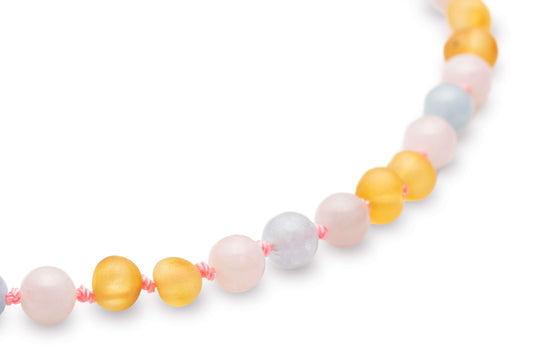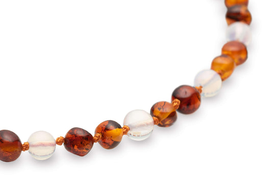 Baltic amber, also known as succinite, is a fossilized tree resin that has benn prized for its warm golden color. It is found in the Baltic region. When combined with semi-precious gemstones such as turquoise lapis lazuli, or rose quartz, it creates stunning and unique jewelry pieces that showcase the beauty of both the amber and the accompanying stones. The combination of Baltic amber and semi-precious gemstones results in exquisite jewelry that captures the essence of nature's beauty and timelessness.